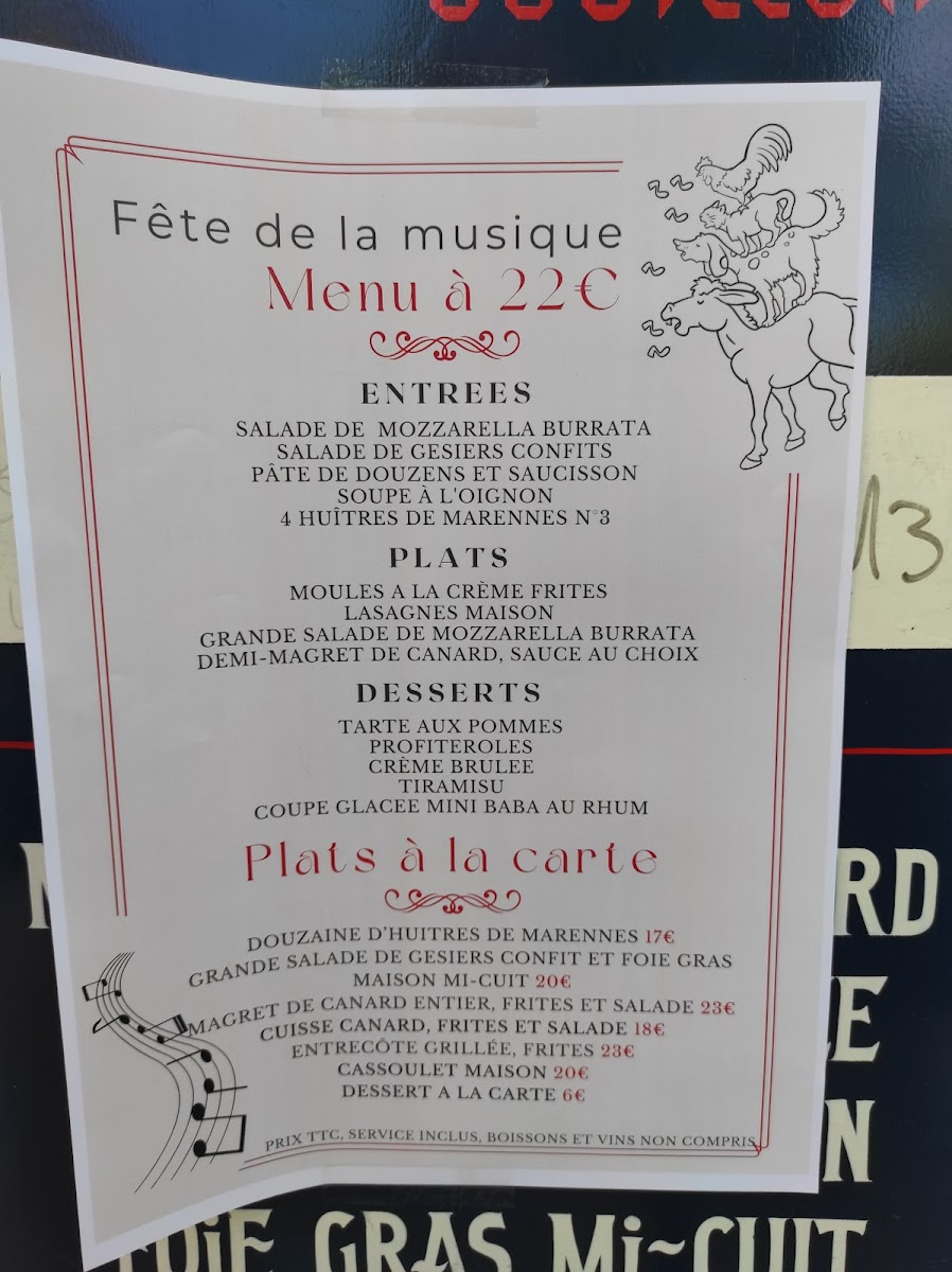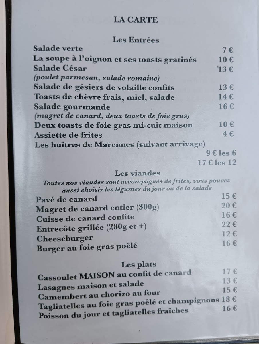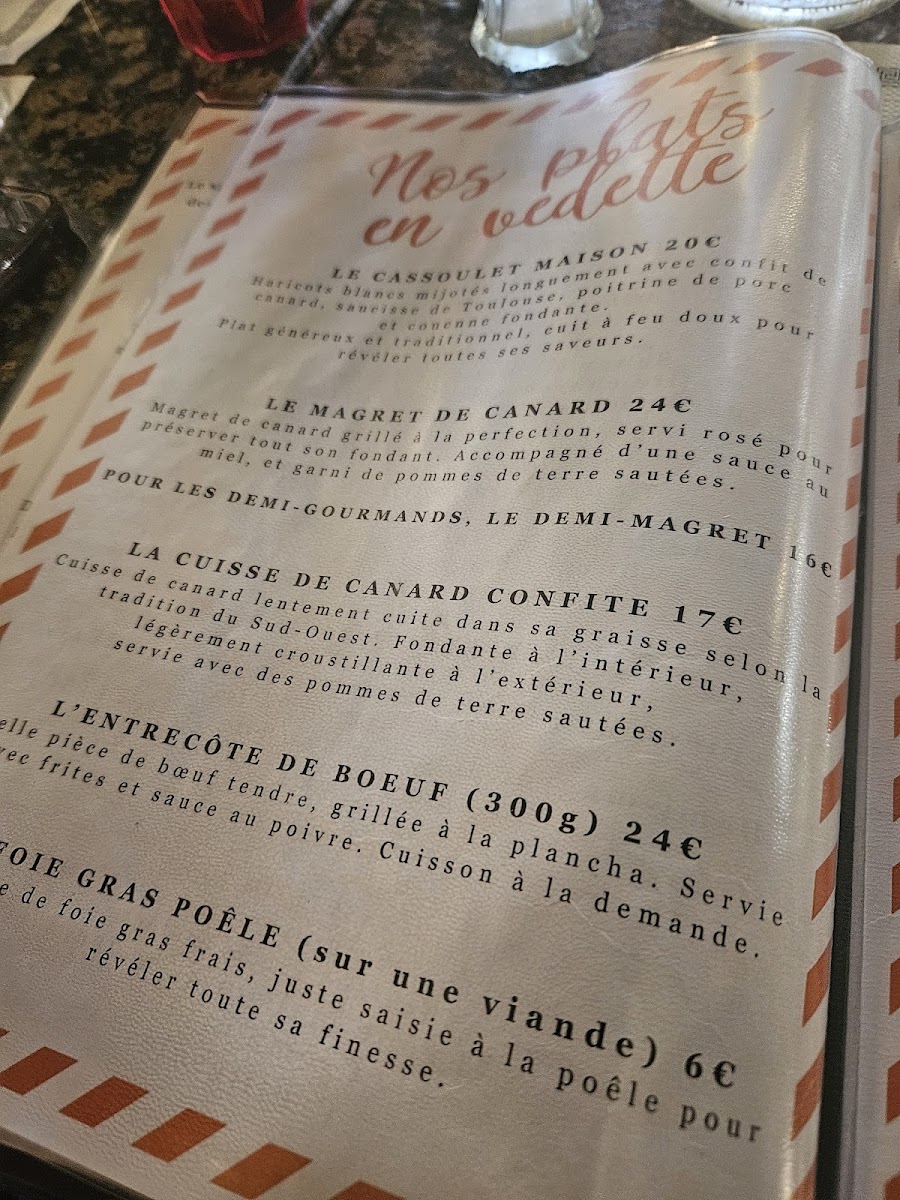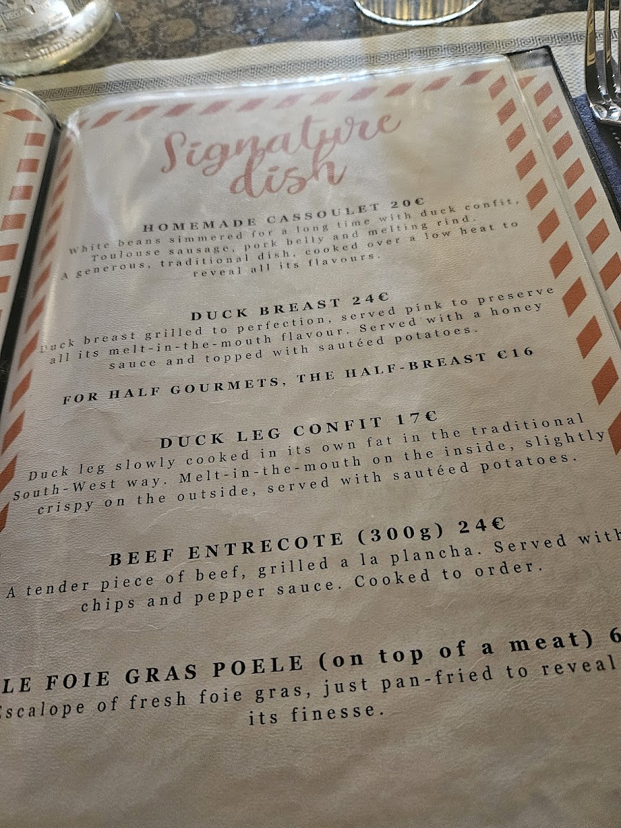 The menu features an array of delectable options, highlighting their renowned steaks and duck dishes, known for their quality and great value. Guests often rave about the succulent steak, offering a tender experience that's truly unforgettable, alongside perfectly paired fries and refreshing wine.